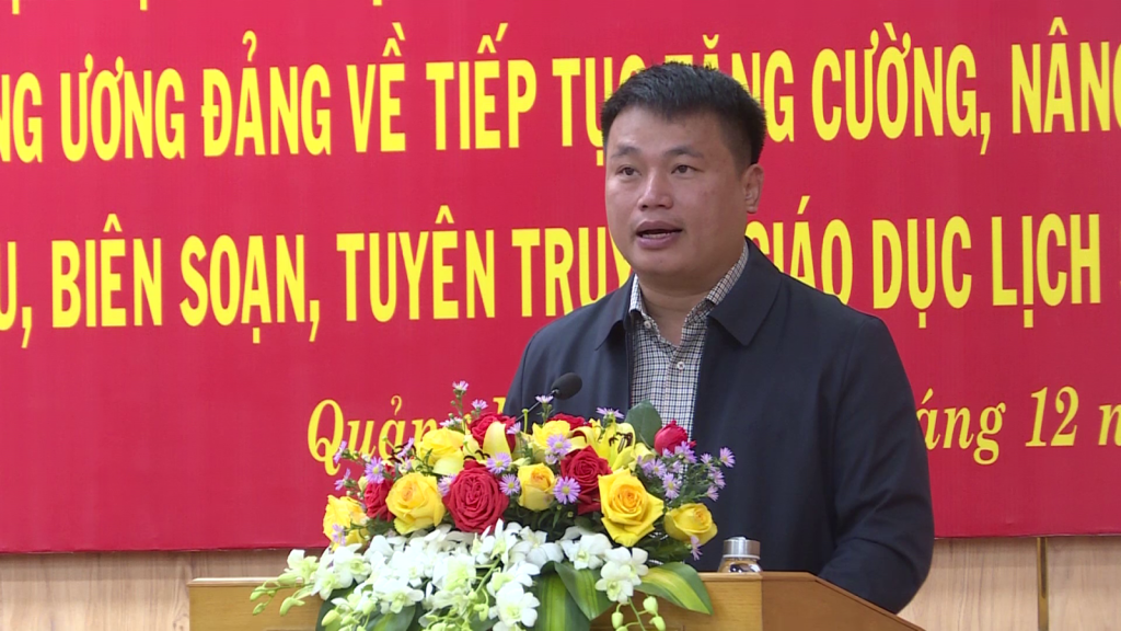 Để công tác nghiên, biên soạn, tuyên truyền, giáo dục lịch sử Đảng, lịch sử truyền thống tiếp tục đạt được những kết quả trong thời gian tới, Phó Bí thư Thường trực Tỉnh ủy, Trưởng Đoàn đại biểu Quốc hội tỉnh Đặng Ngọc Huy đề nghị các cấp uỷ, tổ chức đảng, địa phương, cần nâng cao nhận thức về vị trí, vai trò, tầm quan trọng của công tác nghiên, biên soạn, tuyên truyền, giáo dục lịch sử Đảng, lịch sử truyền thống. Tăng cường vai trò lãnh đạo của cấp ủy, vai trò của người đứng đầu đối với công tác lịch sử Đảng. Đẩy mạnh công tác tuyên truyền, giáo dục lịch sử Đảng trong hệ thống chính trị một cách thường xuyên, thống nhất. Chú trọng nâng cao chất lượng biên soạn. Thực hiện nghiêm túc, đúng quy trình, quy định xuất bản, khắc phục tình trạng xuất bản tràn lan, thiếu định hướng và chất lượng thấp. Công tác nghiên cứu, biên soạn lịch sử Đảng theo tinh thần Chỉ thị số 20 cần gắn với Nghị quyết Đại hội lần thứ XX của Đảng bộ tỉnh và chỉ đạo của Ban Thường vụ Tỉnh ủy. Tiếp tục kiện toàn, xây dựng đội ngũ cán bộ làm công tác lịch sử Đảng đáp ứng yêu cầu nhiệm vụ trong giai đoạn mới. Quan tâm đầu tư cơ sở vật chất, phương tiện làm việc phục vụ công tác nghiên cứu, biên soạn lịch sử Đảng, lịch sử truyền thống của địa phương, đơn vị mình. Bên cạnh đó, cần tăng cường công tác kiểm tra, giám sát việc triển khai thực hiện Chỉ thị số 20 và Kế hoạch số 96 của Ban Thường vụ Tỉnh ủy. Kịp thời biểu dương, khen thưởng những tập thể, cá nhân triển khai thực hiện tốt Chỉ thị số 20./.