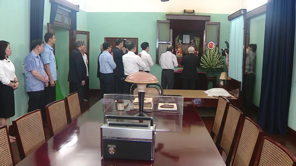 Nhân kỷ niệm 77 năm Cách mạng Tháng Tám và Quốc khánh 2/9 (2/9/1945-2/9/2022), cũng là kỷ niệm 53 năm Ngày Bác Hồ đi xa, sáng 1/9, Tổng Bí thư Nguyễn Phú Trọng đã đến dâng hương tưởng niệm Chủ tịch Hồ Chí Minh tại Nhà 67, Khu Di tích Chủ tịch Hồ Chí Minh tại Phủ Chủ tịch. Nhà 67, nơi Chủ tịch Hồ Chí Minh đã trút hơi thở cuối cùng, hiện vẫn còn lưu giữ nhiều kỷ vật gắn bó với cuộc đời và sự nghiệp của Chủ tịch Hồ Chí Minh.Cùng dự lễ dâng hương có Ủy viên Bộ Chính trị, Thường trực Ban Bí thư Võ Văn Thưởng; Bí thư Trung ương Đảng, Chánh Văn phòng Trung ương Đảng Lê Minh Hưng...