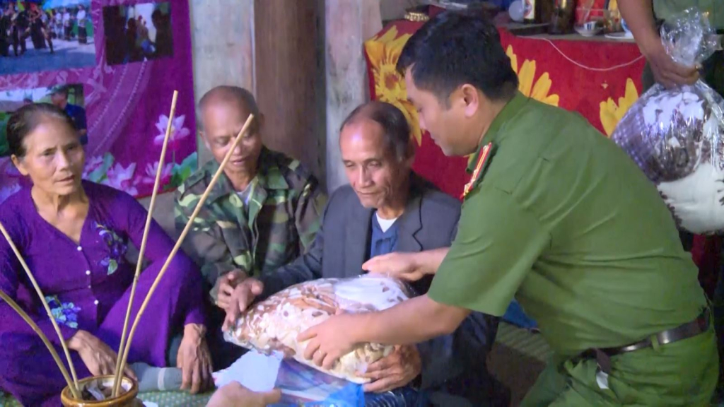 Công an huyện Trà Bồng trao tặng hàng chục suất quà cho người uy tín.