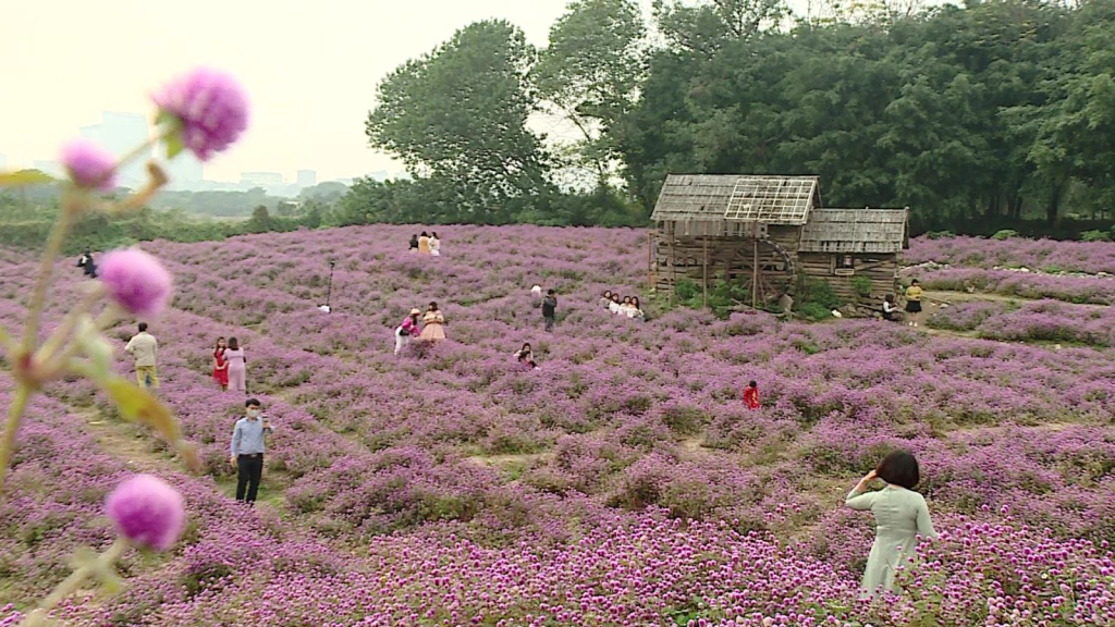 Tháng 12, cánh đồng cúc bách nhật trên đường Thạch Cầu, Long Biên bắt đầu bung nở.Khu vườn rộng hơn 10.000 m2 với khoảng 130 nghìn cây, tạo ra một cánh đồng hoa hồng tím rực rỡ.