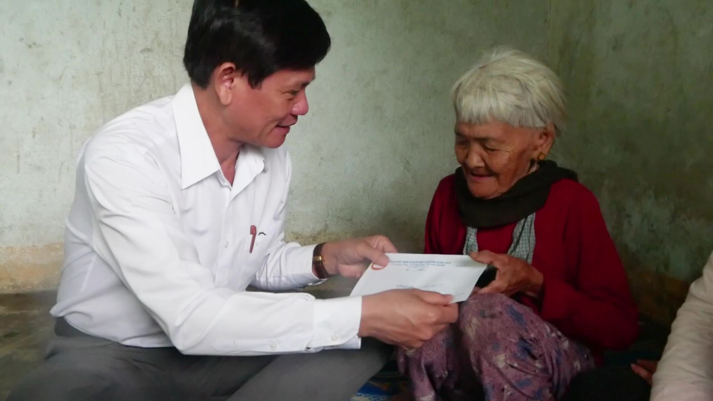 Trưởng ban Nội chính Tỉnh ủy Ngô Văn Trọng thăm và tặng quà cho người nghèo. Ảnh: Phúc Hảo