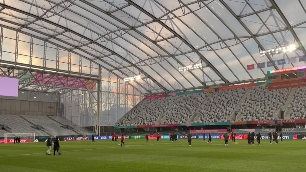 Đây là sân vận động Forsyth Barr ở Dunedin, nơi diễn ra trận đấu, có sức chứa 30 nghìn chỗ ngồi và là sân duy nhất có mái che ở World Cup này. Đá ở đây cũng dễ hiểu, vì Dunedin lạnh hơn những nơi khác ở New Zealand. Đội tuyển đã có buổi làm quen với sân và các cầu thủ cũng như ban huấn luyện có vẻ hài lòng với mặt sân và điều kiện sân có mái che.