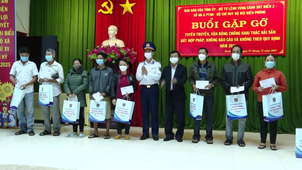 Sáng nay 27/12, Ban Dân vận Tỉnh ủy Quảng Ngãi phối hợp với Bộ Tư lệnh Vùng Cảnh sát biển 2, Sở Nông nghiệp và Phát triển nông thôn, Bộ Chỉ huy Bộ đội Biên phòng tỉnh tổ chức tuyên truyền, vận động ngư dân chống khai thác hải sản bất hợp pháp, không báo cáo và không theo quy định (IUU) tại xã Bình Chánh, huyện Bình Sơn.