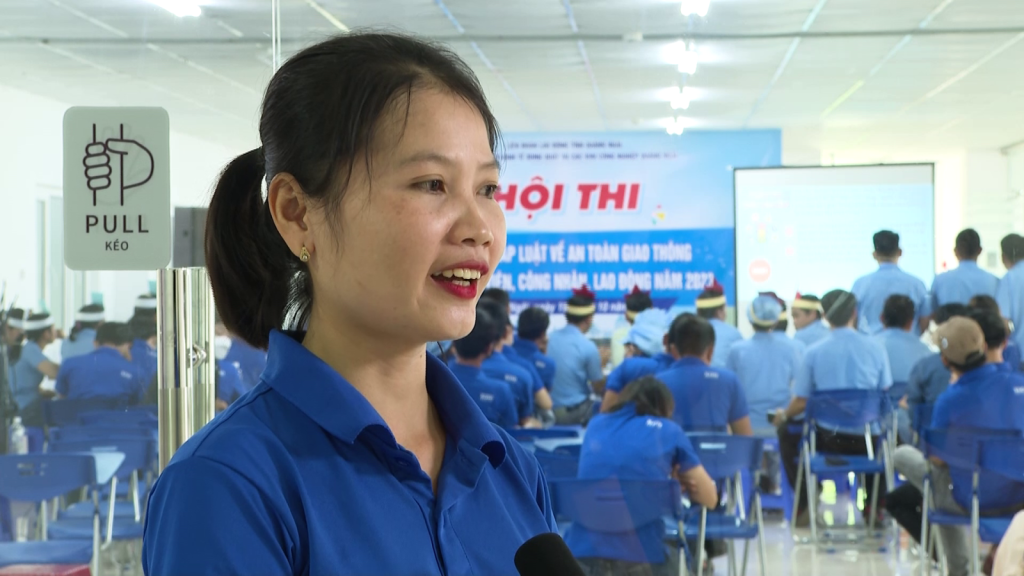 Chị Nguyễn Thị Lệ Duyên, Công nhân Công ty TNHH XDD Textile Việt Nam cho biết: Thông qua cuộc thi tụi em có thể cập nhật nhiều hơn kiến thức về giao thông để thực hiện cho tốt, và đây là cơ hội để gặp gỡ, giao lưu để cùng nhau thực hiện tốt hơn về an toàn giao thông.