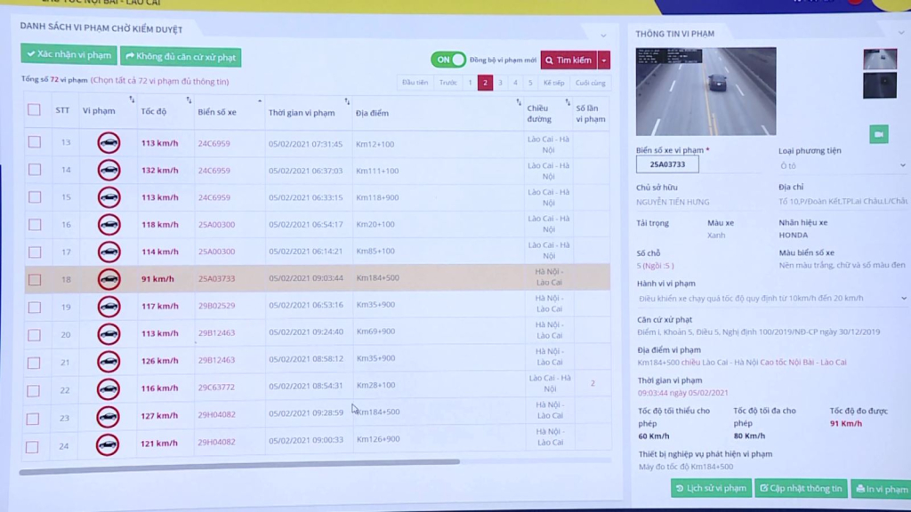 Thiếu tá Trịnh Trung Sĩ, Phó đội trưởng Đội TTKS giao thông cao tốc số 1, Cục CSGT, cho biết : “Thông qua hệ thống giám sát chúng tôi có thể thông báo đến các điểm chốt xử phạt trực tiếp đối với trường hợp vi phạm. Hoặc gửi thông báo phạt nguội đến người vi phạm. Thông qua hình ảnh trích xuất người vi phạm tâm phục, khẩu phục, chấp nhận lỗi vi phạm của mình”.