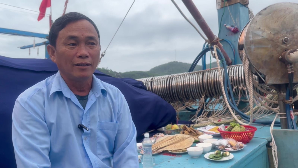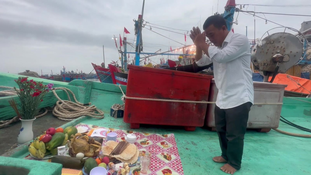 Ngư dân Nguyễn Văn Men, Thuyền trưởng tàu cá QNg 98104 TS chia sẻ: Sống nghề biển đầu năm mình lo cái lễ xuống nghề trong ghe. Đầu năm mình cầu mong làm ăn sao cho nó đạt.