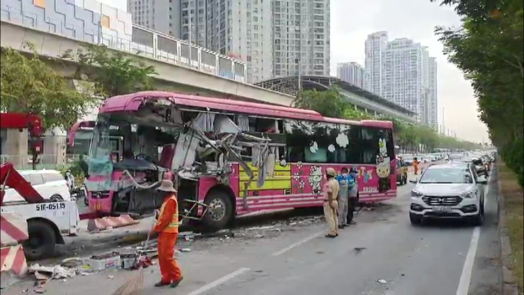 Gần 4 giờ sáng nay, xe khách giường nằm loại 29 chỗ, lưu thông hướng từ ngã tư Thủ Đức về cầu Sài Gòn.Khi vừa qua khỏi nút giao thông Cát Lái khoảng 500m thì bất ngờ lao tới, tông mạnh vào đuôi xe bồn đang tưới cây xanh.