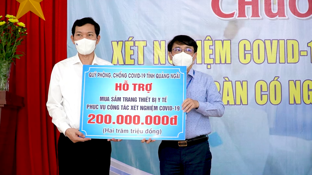 Trưởng Ban Dân vận Tỉnh ủy, Chủ tịch Uỷ ban MTTQ Việt Nam tỉnh Võ Thanh An đã trao số tiền hỗ trợ 200 triệu đồng để thành phố Quảng Ngãi mua sắm vật tư y tế, sinh phẩm phục vụ cho công tác xét nghiệm COVID-19.