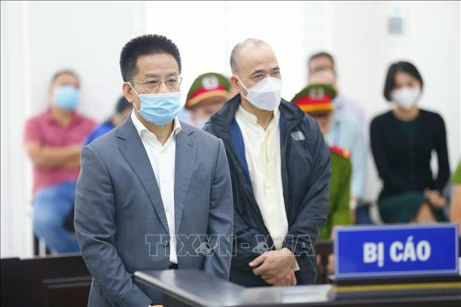 Bị cáo Nguyễn Xuân Sơn (Tổng Giám đốc PVOil), Vũ Trọng Hải (Kế toán trưởng PVOil) tại phiên tòa. Ảnh: TTXVN